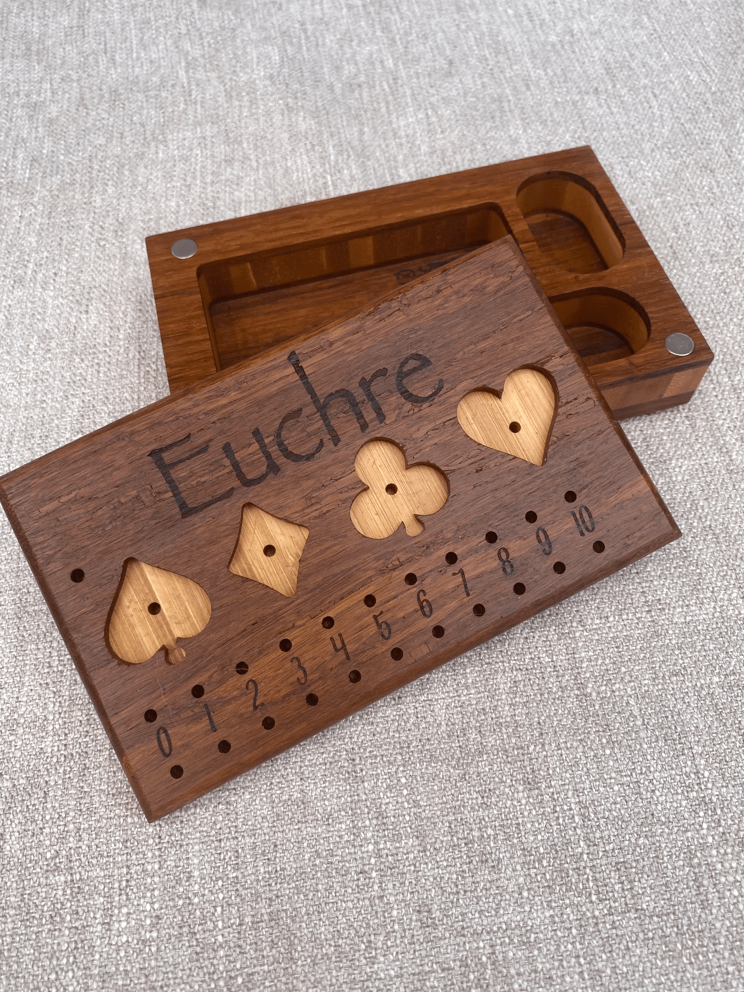 ****Prices include shipping within the continental USA**** Board Games Categories: All Cutting Board Small Cutting Board Charcuterie Board Cheese Board Beauty Board Games Cocktail Tray Company Swag Accessories All / Euchre Game Set $50.00 Peg Board Game $30.00 Cribbage Board $240.00